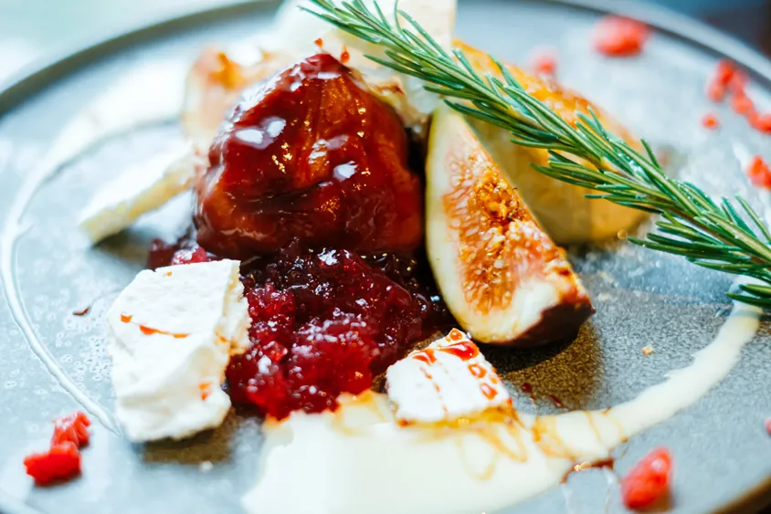 完熟いちじくを使う醍醐味を味わってもらいたいと、ジャムでなくコンフィチュールを選び、果肉感がきちんと残るように仕上げました。意外とあっさりしているので、コースメニューの後でも、あっという間に食べれてしまうと思います。